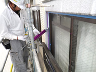 窓廻り/壁打継ぎ目地を既存のシーリングを撤去後新しく打ち替えます。 |